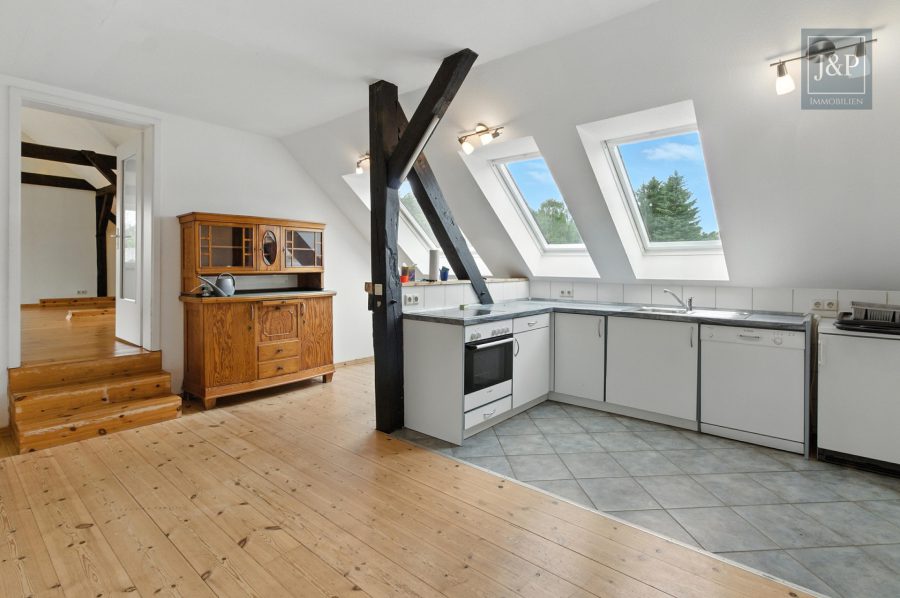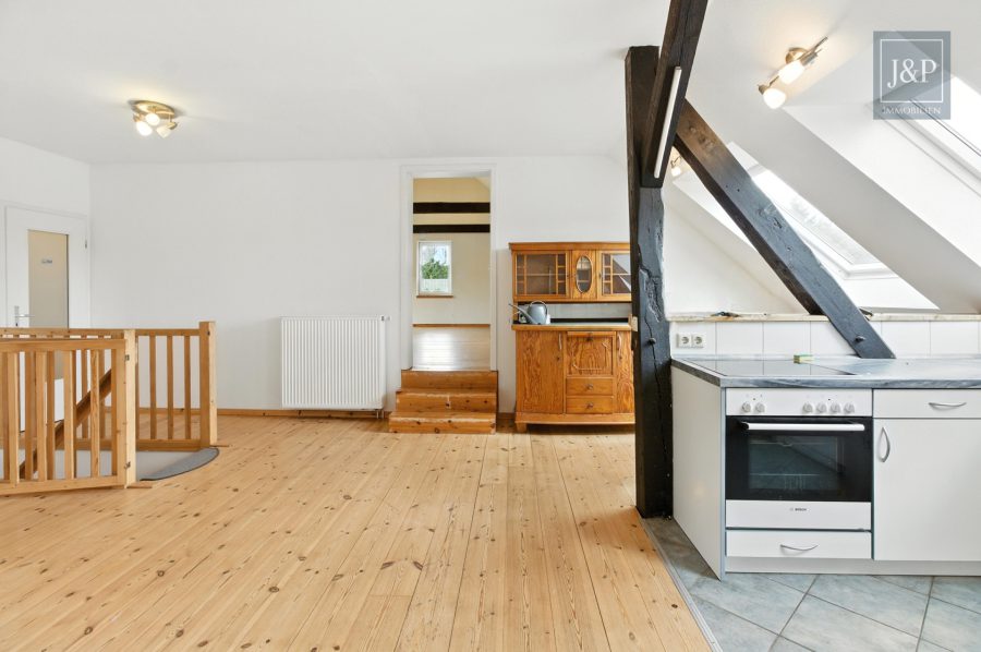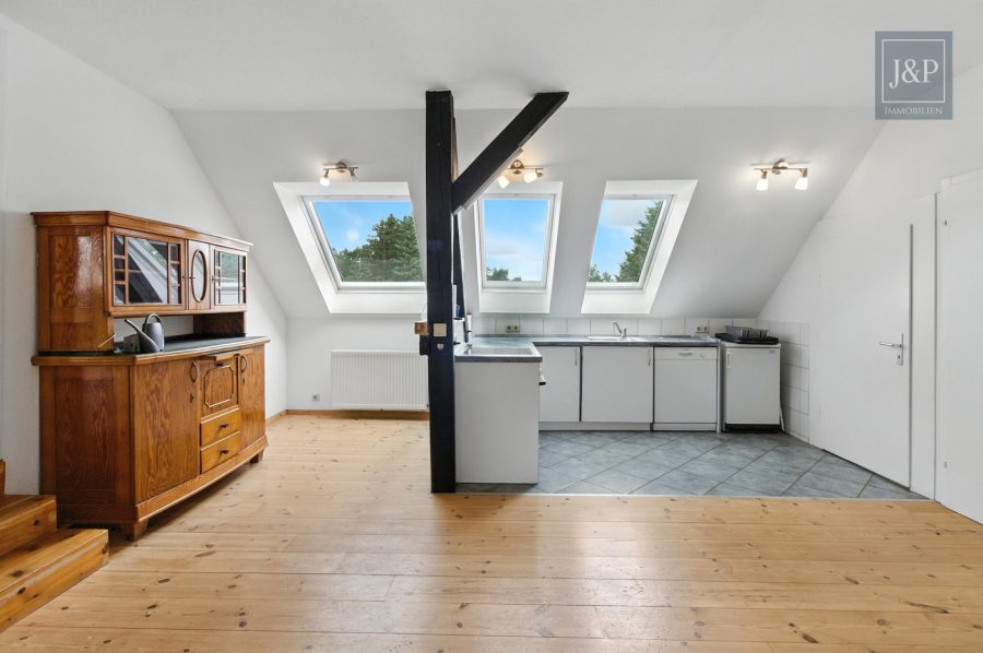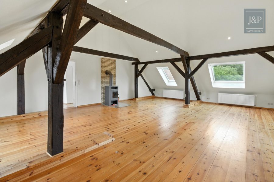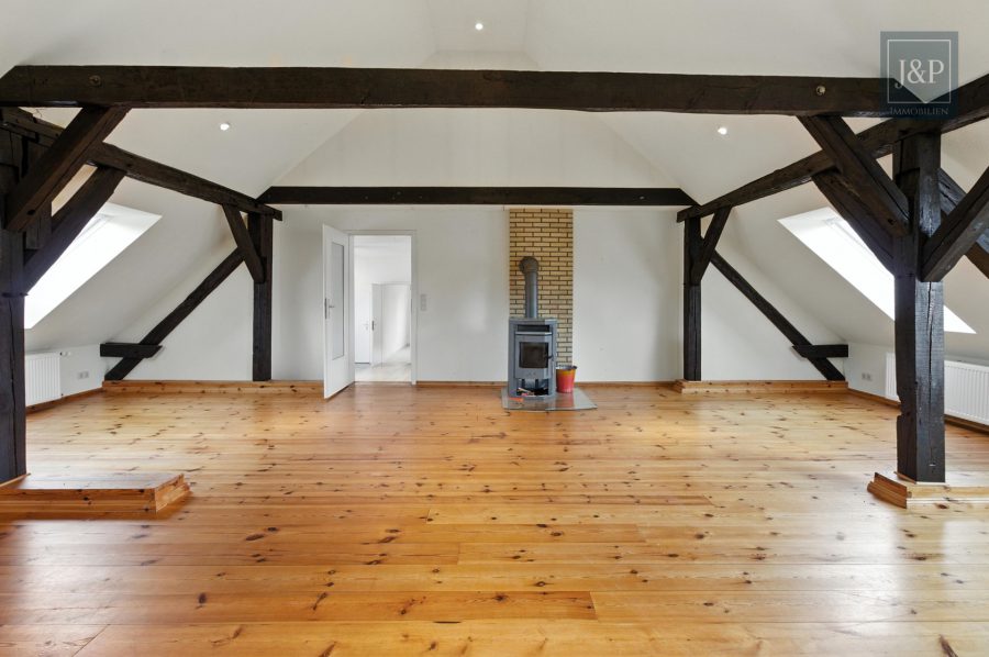 + Großes, ausgebautes Dachgeschoss mit offenem Wohnbereich und sichtbaren Holzbalken