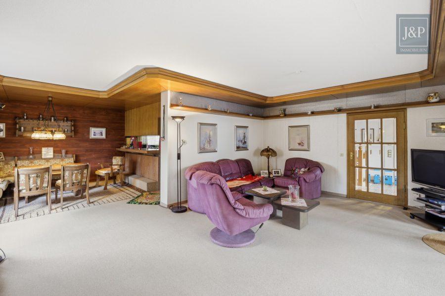 Zeitlose Eleganz der 70er: weitläufiger Bungalow mit Wintergarten-Oase und offenem Kamin