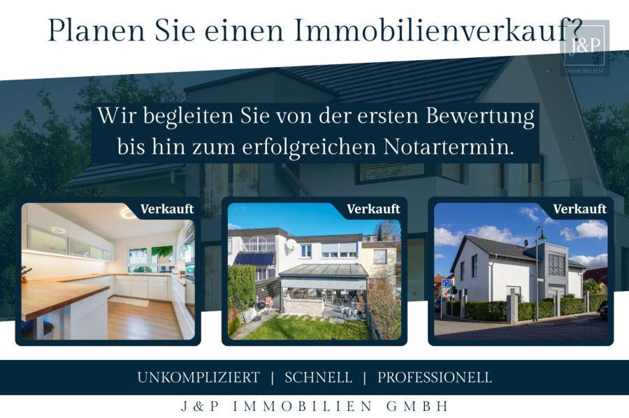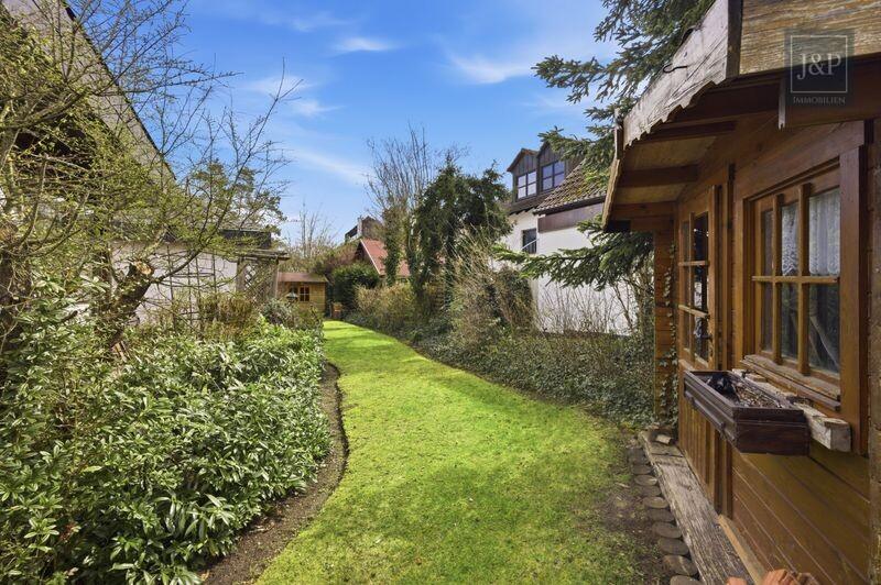 Der uneinsehbare, eingewachsene Garten umschließt das Haus wie eine grüne Insel. Von der sonnigen Süd-Terrasse genießen Sie absolute Ruhe. Eine geräumige Doppelgarage vervollständigt dieses attraktive Angebot.