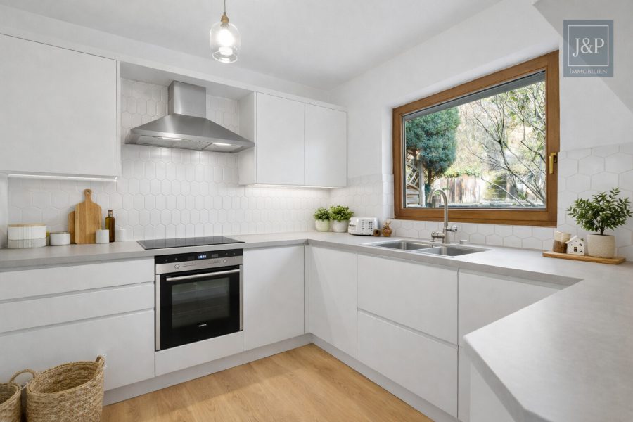 Die Küche und Bäder entsprechen optisch nicht mehr ganz dem neuesten Zeitgeist, sind jedoch voll funktionsfähig und technisch einwandfrei. Dadurch bietet sich die Möglichkeit, direkt einzuziehen und Modernisierungen ganz entspannt und nach eigenen Vorstellungen Schritt für Schritt umzusetzen – ohne Renovierungsdruck.
