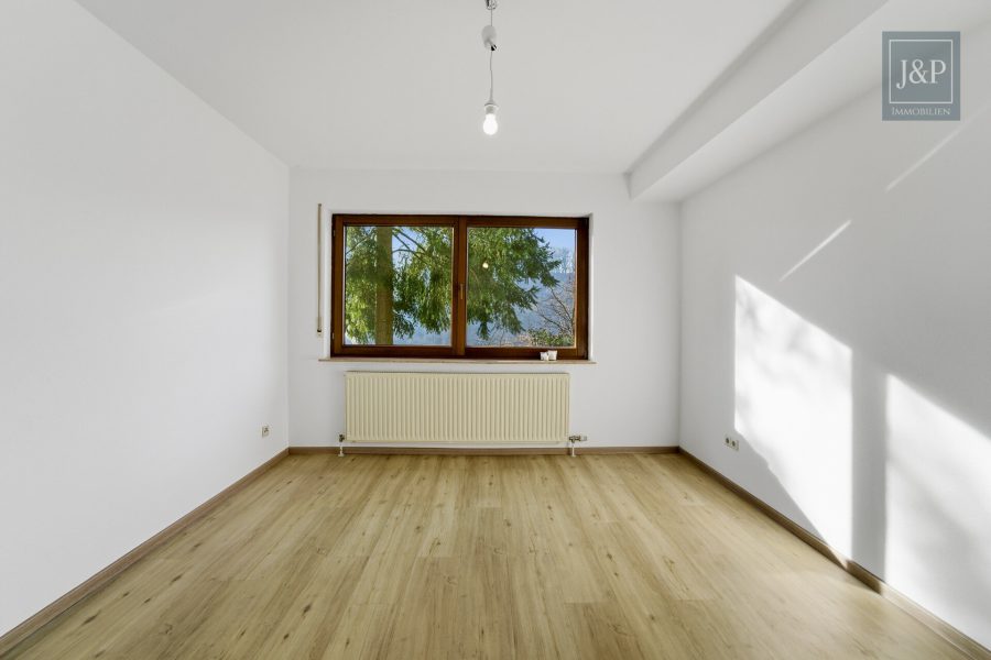 Das Herzstück des Hauses bildet das sehr großzügige Wohnzimmer mit Kamin und großen, bodentiefen Fensterflächen. Von hier aus genießen Sie einen traumhaften Blick ins Tal und auf die umliegenden Berge. Der angrenzende Balkon erweitert den Wohnraum nach außen und lädt zum Entspannen in absolut ruhiger Umgebung ein. Im Obergeschoss steht zusätzlich eine Loggia zur Verfügung – ebenfalls mit Fernblick.