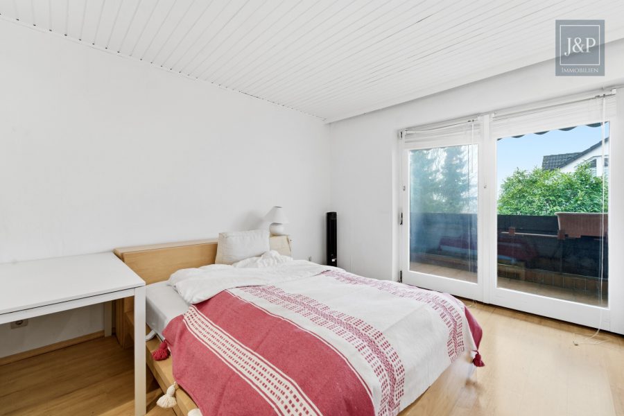 Ein besonderes Highlight befindet sich in einem der Kinderzimmer bzw. im Büro: Von hier aus eröffnet sich ein beeindruckender Ausblick bis zur Frankfurter Skyline und in Richtung Odenwald – eine Aussicht, die man in dieser Lage nur selten findet.