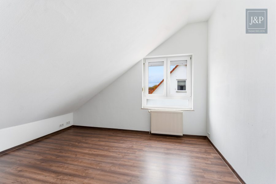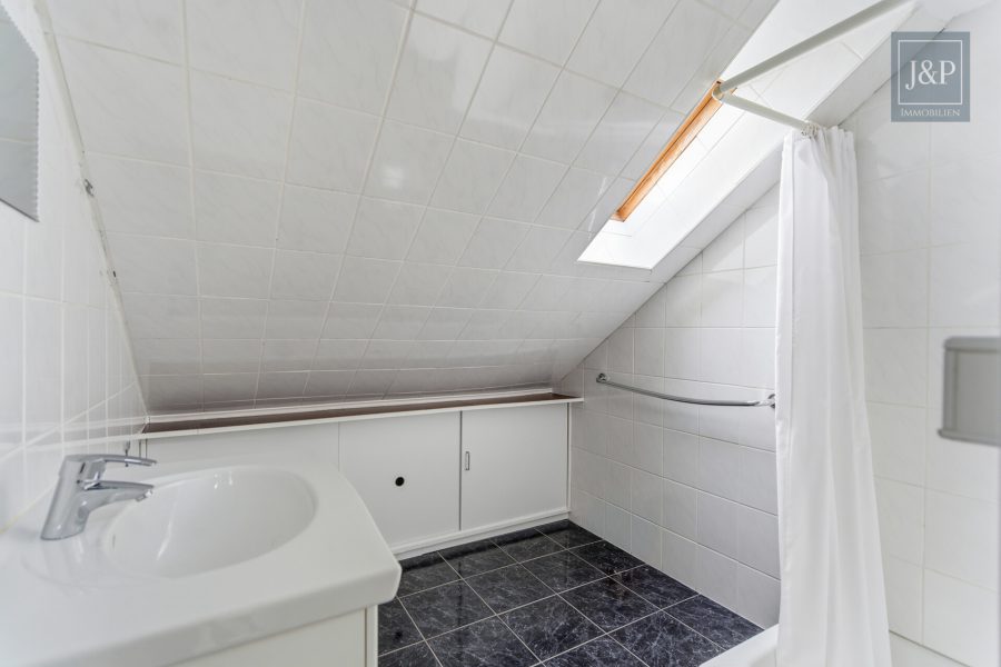 Im Obergeschoss stehen Ihnen ein ein Tageslichtbad mit Dusche und Badewanne, ein Kinderzimmer und das große Elternschlafzimmer mit Zugang zur Loggia zur Verfügung. Das Dachgeschoss beherbergt zwei weitere gemütliche Schlafzimmer und ein weiteres Tageslich-Duschbad.