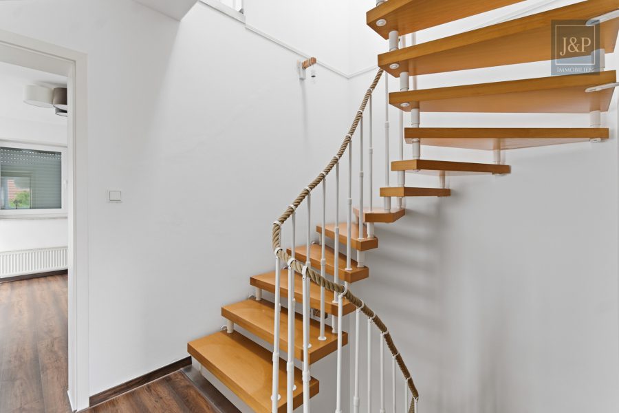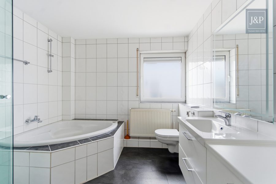 Die Ausstattung überzeugt durch durchdachte Details: zwei moderne Tageslichtbäder, eine Klimaanlage, eine Wasserenthärtungsanlage sowie ein Buderus Gas-NT-Heizkessel vom Typ G124 sorgen für hohen Wohnkomfort. Eine Garage und ein zusätzlicher Außenstellplatz bieten Platz für Ihre Fahrzeuge.
