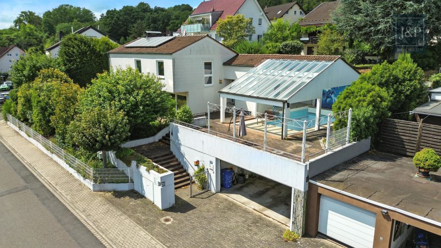 Suchen Sie ein luxuriöses, lichtdurchflutetes Zuhause mit eigener Wohlfühloase und weitläufigem Grundstück? Legen Sie zusätzlich Wert auf architektonischen Charme und einen eigenen Pool? Dann ist dieses außergewöhnliche Objekt genau das Richtige für Sie!