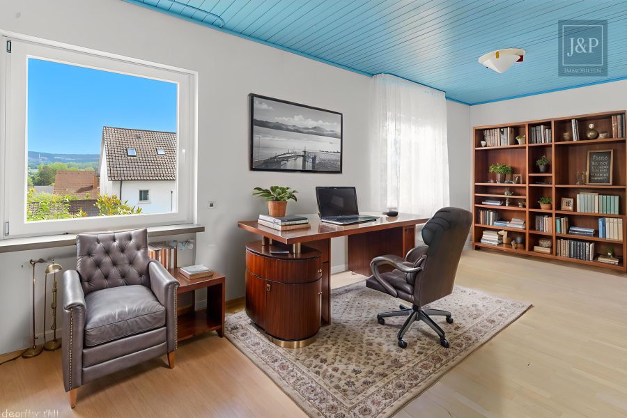 Das rund 230 m² große Wohnparadies überzeugt nicht nur durch sein großzügiges Platzangebot mit sechs Zimmern, sondern vor allem durch seinen besonderen Charakter: Lichtdurchflutete Räume, ein fantastischer Fernblick und große Fensterfronten, die den Blick ins Grüne freigeben. Der weitläufige Garten mit liebevoll angelegter Sitzecke bietet Freiraum für Kinderträume, Gartenfeste und entspannte Grillabende.