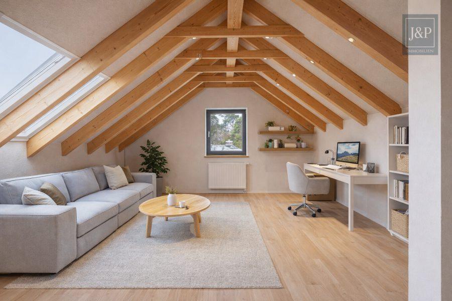 Besonders spannend: Das Dachgeschoss bietet zusätzliches Potenzial zur individuellen Entfaltung. Die wesentlichen Vorbereitungen sind bereits getroffen – hier können Sie weiteren Wohnraum schaffen und das Haus langfristig perfekt an Ihre Bedürfnisse anpassen.