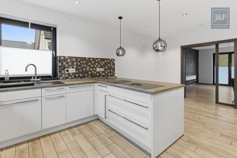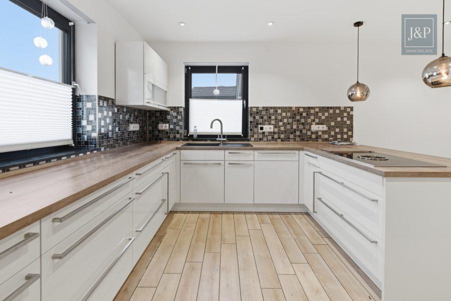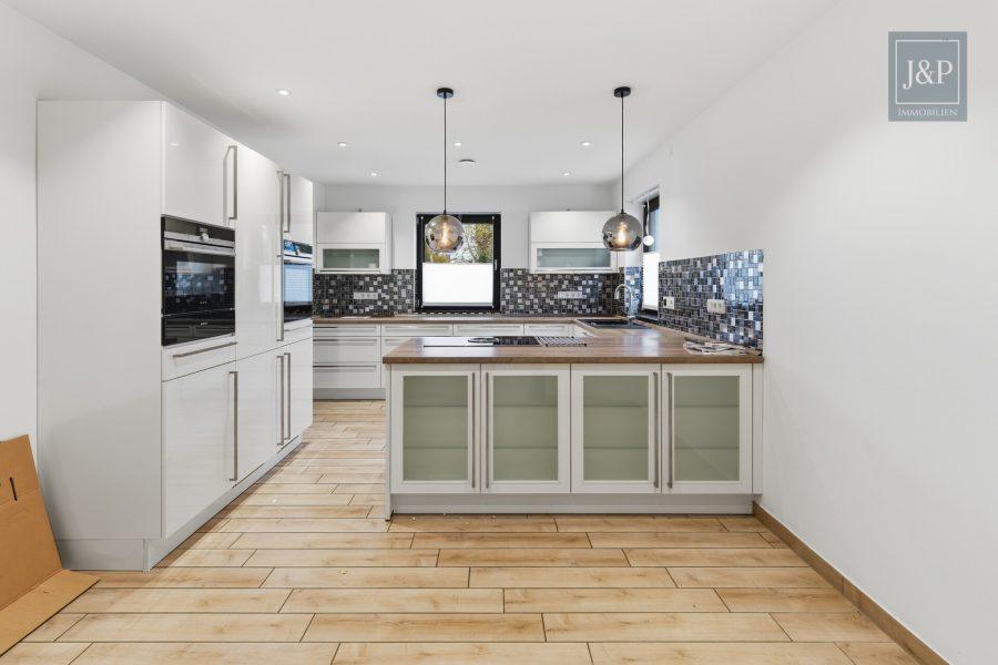 Die Küche fügt sich harmonisch in den Wohnbereich ein und schafft kurze Wege im Alltag – besonders praktisch im Familienleben. Insgesamt stehen Ihnen drei Schlafzimmer sowie zwei Bäder und ein zusätzliches Gäste-WC zur Verfügung – genug Platz für Kinder, Homeoffice oder Gäste.