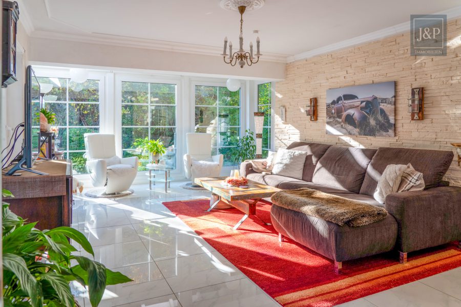 - Großzügiger, lichtdurchfluteter Wohn-/Essbereich mit bodentiefen Fenstern