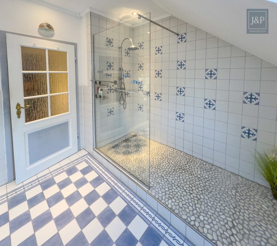 - Drei vollwertige Bäder, davon eins mit hochwertiger Walk-In-Dusche und Kieselboden, plus Gäste-WC