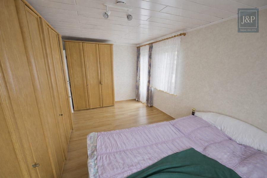 Das Haupthaus aus dem Jahr 1965 bietet mit seinen 6,5 Zimmern viel Platz für die ganze Familie. Der großzügige Schnitt ermöglicht ein komfortables Wohnen mit vielfältigen Nutzungsmöglichkeiten – von Kinderzimmern über Homeoffice bis hin zu Hobbyräumen. Der Kamin im Wohnbereich sorgt für eine warme, einladende Atmosphäre, während der große Balkon zusätzlichen Freiraum im Alltag schafft.
