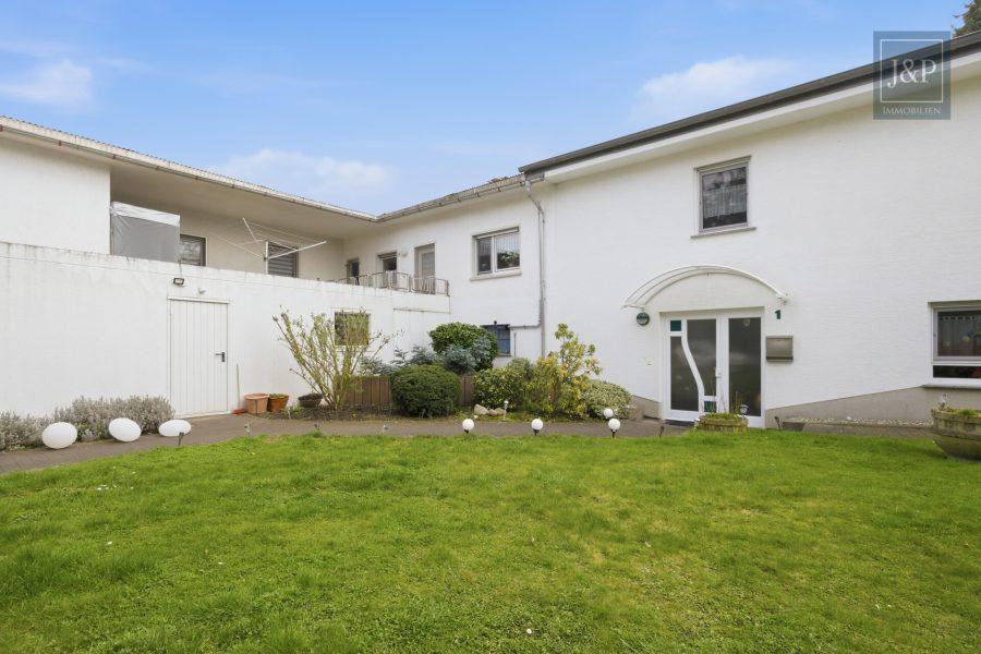 Das im Jahr 1997 errichtete Hinterhaus ergänzt das Ensemble ideal. Auf zwei Etagen verteilt, bietet es eine eigenständige Wohneinheit mit Einbauküche, Tageslichtbad im Obergeschoss sowie einem Gäste-WC im Erdgeschoss. Der eigene Freisitz mit Blick in den Garten schafft eine ruhige Rückzugsmöglichkeit mit hoher Lebensqualität.