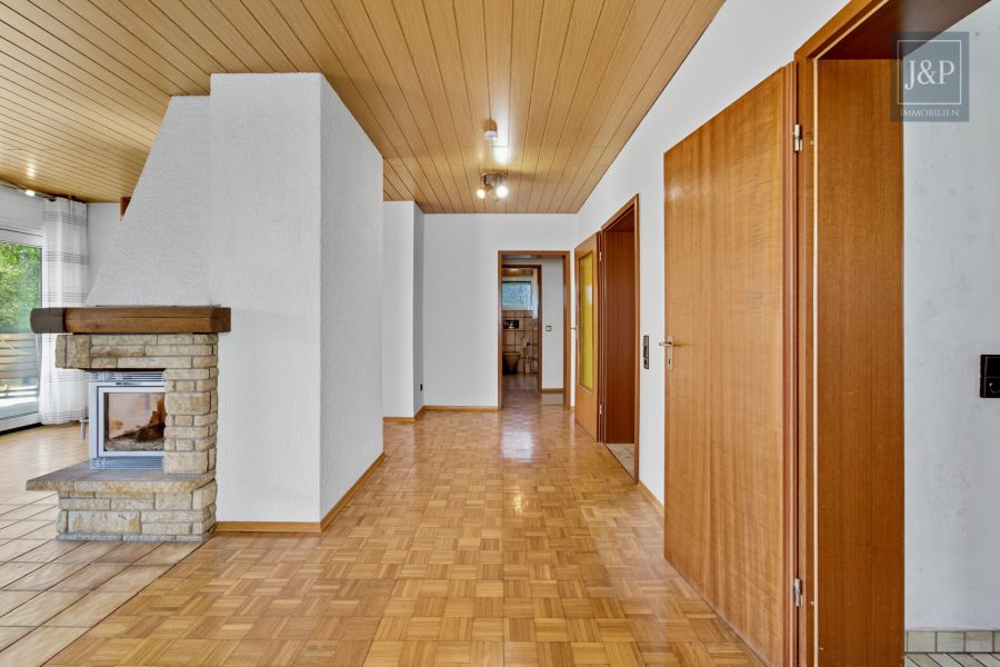 Wichtige Maßnahmen wurden bereits umgesetzt: Die Ölheizung mit Brennwerttechnik stammt aus 2017, das Dach ist zusätzlich gedämmt, und die Kassette im Kamin wurde erneuert, sodass dieser weiterhin genutzt werden darf. Dank dieser Maßnahmen und der sehr guten Bausubstanz weist das Haus trotz Baujahr 1982 einen Energiekennwert der Klasse C auf – ein außergewöhnlich guter Wert für diese Zeit, der die Qualität und Werthaltigkeit der Immobilie unterstreicht.