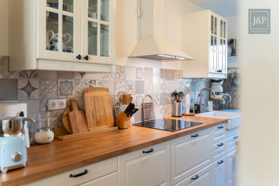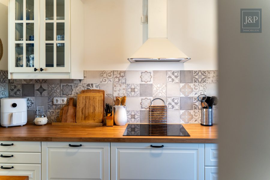 Im Erdgeschoss erwartet Sie auf der linken Seite ein Gäste-WC sowie ein Garderobenbereich. Auf der rechten Seite befindet sich die offengehaltene, neu eingebaute Küche mit angrenzender Öffnung zum Essbereich. Dieser lädt zu gemeinsamen Abenden mit der Familie ein. Angrenzend an den Essbereich befindet sich der Wohnbereich mit einer extra großen Fensterfront und einem Ausgang auf die Terrasse mit Garten. Durch die angenehme Gartengröße und gute Ausrichtung bietet Ihr Zuhause die perfekte Kulisse für Grillabende mit Freunden sowie ein Frühstück im Freien mit den ersten Sonnenstrahlen. Die Markise und der getrennte Gartenausgang sowie ein Kellerzugang runden den Außenbereich ab.