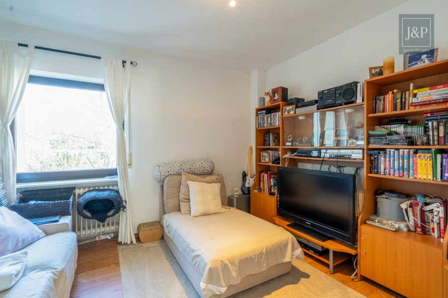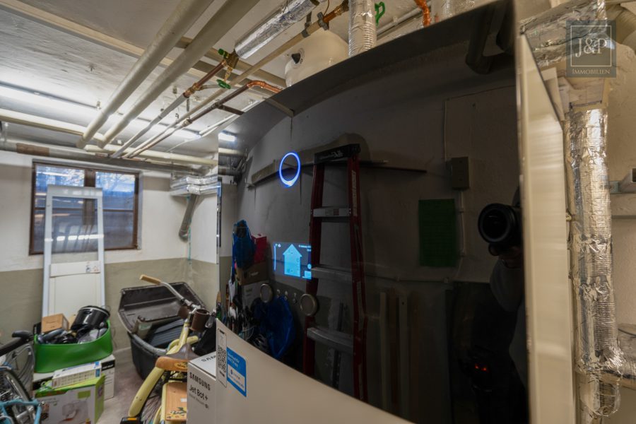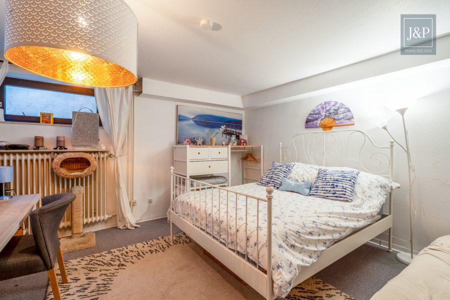 Im Untergeschoss befindet sich ein weiteres ausgebautes Zimmer (nicht in der Wohnfläche angegeben), das ideal als Gästebereich oder Rückzugsort für ein älteres Kind genutzt werden kann und einen eigenen Zugang zum Garten hat. Durch das ebenfalls integrierte Badezimmer mit Dusche und Waschmaschinenanschlüssen bietet es alles, um Gäste zu beherbergen und trotzdem ihre Privatsphäre zu schützen. Zusätzlich kann das Bad durch den getrennten Gartenzugang auch für Vierbeiner optimal genutzt werden, um gleichzeitig das Haus ordentlich und sauber zu halten. Ein zusätzlicher Abstellraum sowie der renovierte Heizungskeller befinden sich ebenfalls im Untergeschoss.