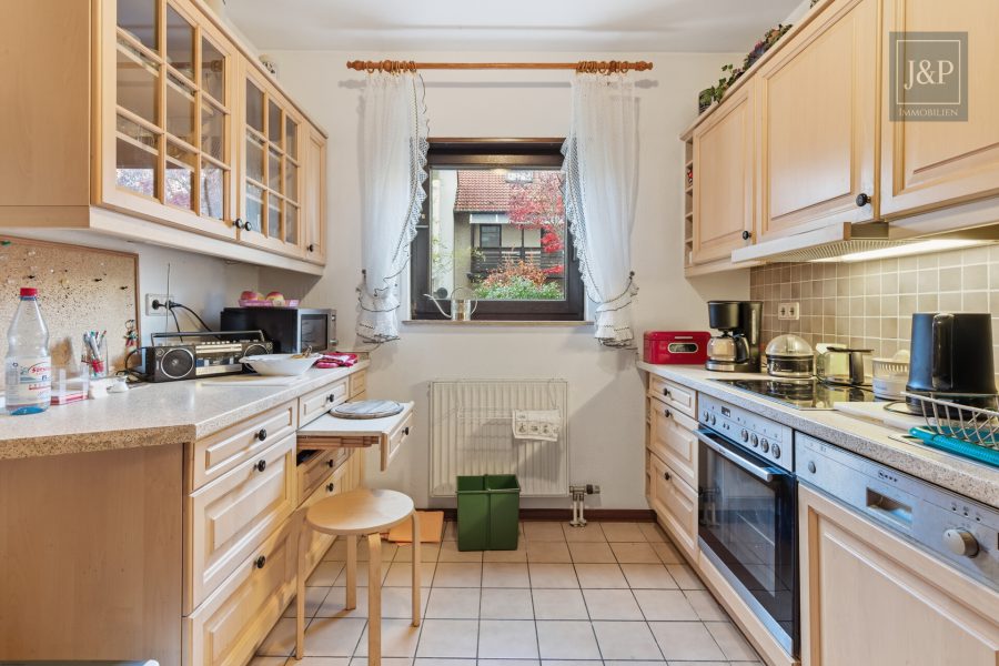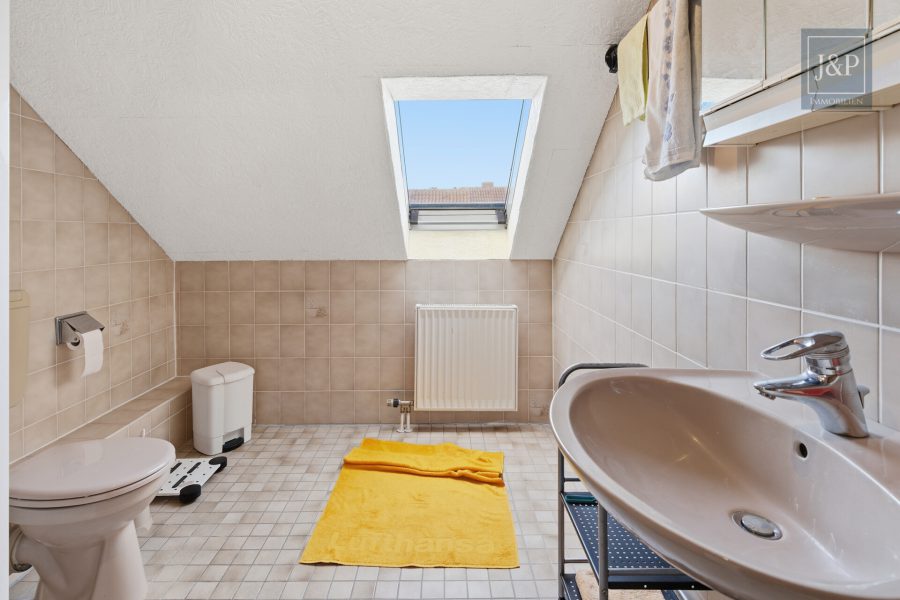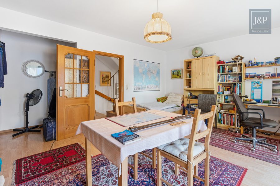 Das vollständig ausgebaute Dachgeschoss bietet zusätzliche Wohnfläche und ein beeindruckend großes Zimmer, das sich hervorragend als Jugendbereich, Gästeetage oder Arbeitsdomäne eignet. Ein separates kleines Büro sowie ein weiteres Tageslichtbad erweitern die Nutzungsmöglichkeiten und schaffen optimale Voraussetzungen für Menschen, die Wohnen und Arbeiten harmonisch verbinden möchten.