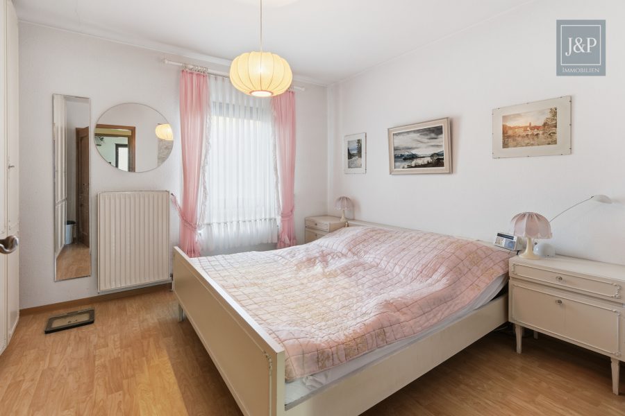Im Obergeschoss erwartet Sie ein besonderes Highlight: ein großzügig geschnittenes Zimmer mit Zugang zum Balkon, das ursprünglich durch eine Trennwand in zwei Räume aufgeteilt war. Bei Bedarf lässt sich diese Struktur problemlos wiederherstellen – perfekt für Familien, Arbeitsbereiche oder flexible Wohnmodelle. Ergänzt wird die Etage durch ein gemütliches Schlafzimmer und ein helles Tageslichtbad.