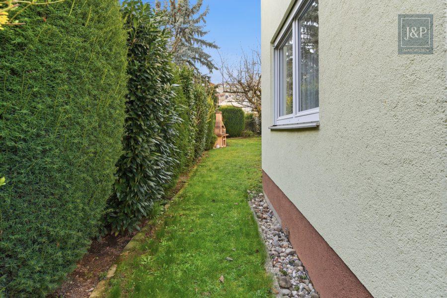 Ein weiteres Highlight ist der großzügige Garten auf dem rund 609 m² großen Grundstück. Dieser bietet ausreichend Platz für Spiel, Entspannung und gemeinsame Zeit im Freien – ein echtes Plus für Familien.