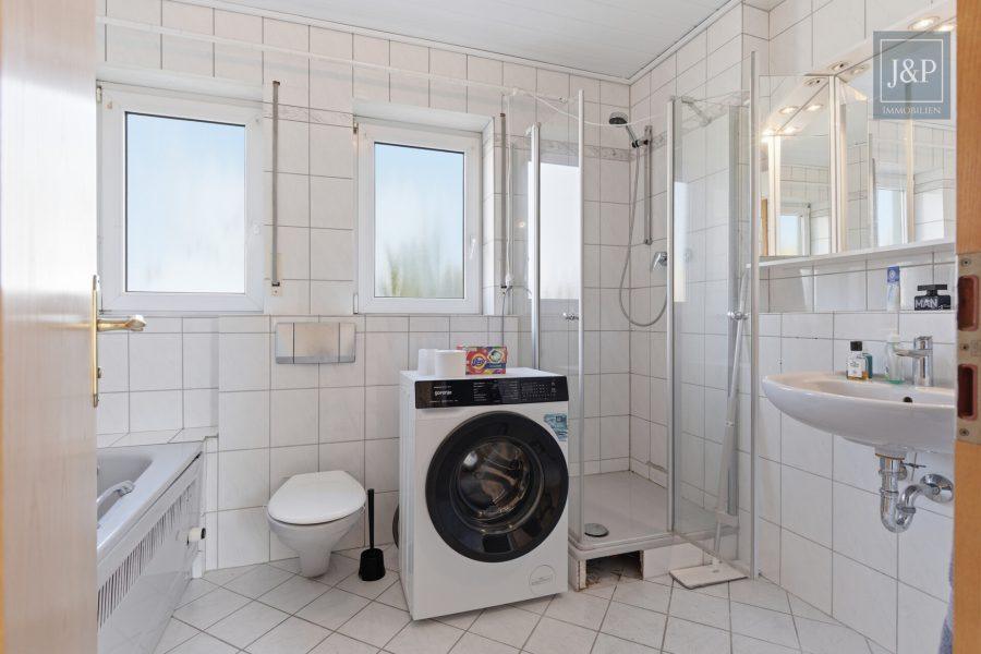 Das Obergeschoss bietet eine 3-Zimmer-Wohnung, die durch ihre Helligkeit und den direkten Zugang zum Balkon überzeugt. Große Fensterflächen sorgen für viel Licht und schaffen eine angenehme Wohnatmosphäre. Die Räume wirken modern und klar strukturiert – perfekt für Familienmitglieder, die ihren eigenen Bereich innerhalb des Hauses haben möchten.