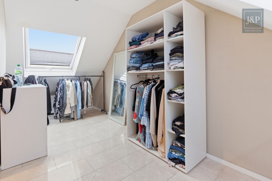 Im Dachgeschoss befinden sich ein Raum mit Badzugang, welcher sich optimal als Ankleide eignet. Ein großzügiges Zimmer sowie ein weiterer Raum, der bisher als Stauraum genutzt wurde. Durch das Einziehen einer Wand könnte der große Raum problemlos in zwei Zimmer geteilt werden, falls benötigt.