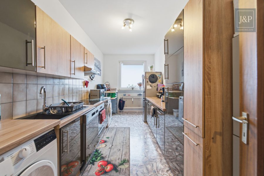Die ca. 96 m² große Wohnung befindet sich im 7. Obergeschoss eines gepflegten Mehrfamilienhauses und ist bequem sowie barrierefrei mit dem Aufzug erreichbar. Ein klarer Vorteil im Familienalltag oder später im Alter. Durch die Lage am Ende des Ganges genießen Sie zusätzliche Ruhe und Privatsphäre.
