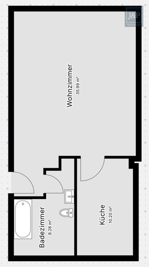 + Einraumwohnung (ca. 50 m²) mit separater Küche & Tageslichtbad mit Badewanne