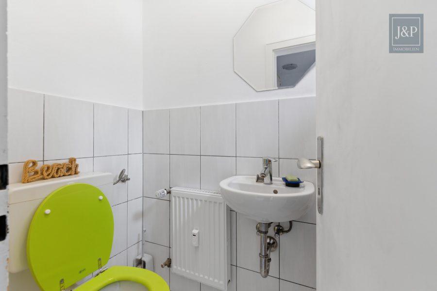 Die Wohnung verfügt über ein Badezimmer sowie ein separates Gäste-WC, was den Alltag insbesondere für Familien deutlich komfortabler gestaltet.