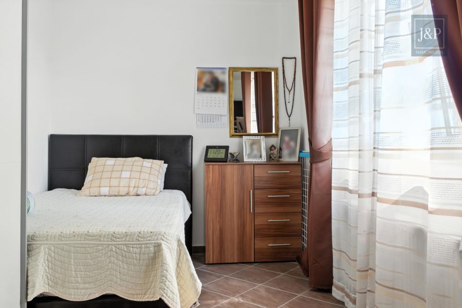Das modernisierte Tageslichtbad verfügt über eine Dusche und wurde 2018 umfassend saniert. Ein Schlafzimmer sowie ein weiterer Raum, ideal als Kinderzimmer oder Homeoffice, bieten ausreichend Platz für unterschiedliche Lebenssituationen. Eine kleine Abstellkammer im Flur sorgt zusätzlich für praktischen Stauraum.