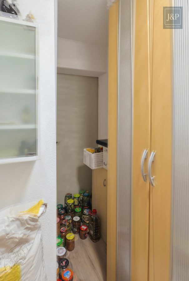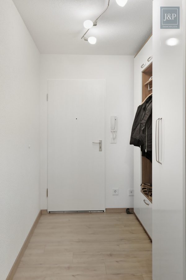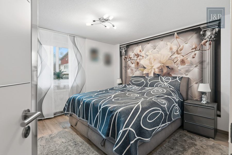 Auch energetisch ist die Wohnung auf dem neuesten Stand: Die im Jahr 2016 eingebauten, dreifach verglasten Kunststofffenster verfügen über elektrische Rollläden und garantieren eine hervorragende Dämmung. Ein besonderes technisches Highlight ist das eigene Balkonkraftwerk mit vier Modulen, welches zur Reduzierung der Energiekosten beiträgt. Das Bad gleicht einer privaten Wellness-Oase und ist sowohl mit einer einladenden Eckbadewanne als auch mit einer separaten Glashanddusche ausgestattet. Zudem findet sich hier ein geschickt integrierter Schrankturm für Waschmaschine und Trockner. Die Schlafräume sind mit Laminat in Holzoptik ausgelegt und bieten einen ruhigen Rückzugsort.